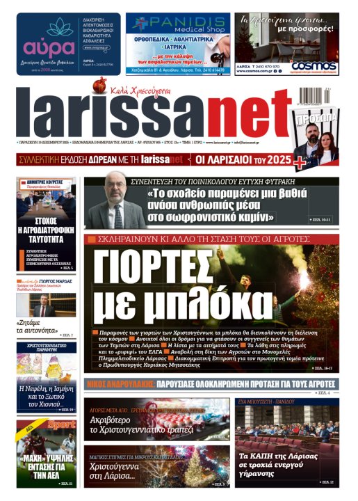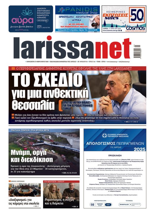Διαβάστε την εβδομαδιαία larissanet έτσι όπως τυπώνεται!
