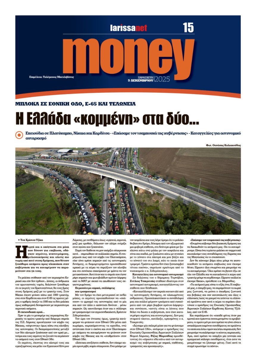 Με πρώτο θέμα και τίτλο «Το όραμα για τους παραγωγούς» κυκλοφορεί αυτή την Παρασκευή η εφημερίδα μας, φιλοξενώντας αποκλειστική συνέντευξη του προέδρου του ΠΑΣΟΚ, Νίκου Ανδρουλάκη. Ρεπορτάζ, άρθρα, συνεντεύξεις και όλο το παρασκήνιο της εβδομάδας στο νέο φύλλο της larissanet.