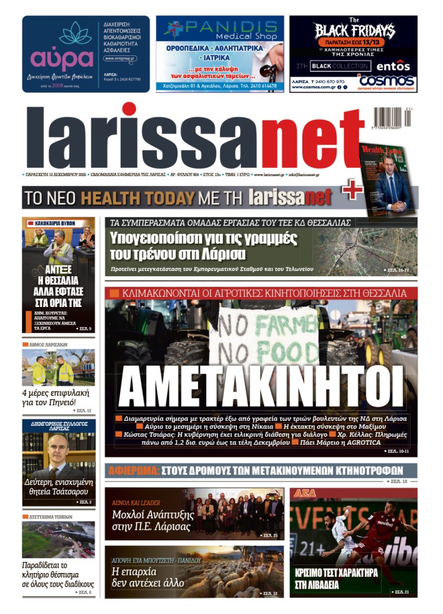 Ρεπορτάζ, άρθρα, συνεντεύξεις και όλο το παρασκήνιο της εβδομάδας στο νέο φύλλο της larissanet.