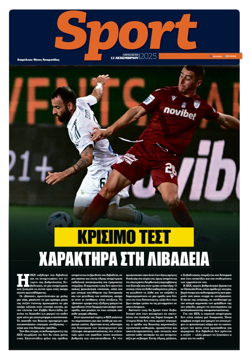 ΑΕΛ: Κρίσιμο τεστ χαρακτήρα στη Λιβαδειά.