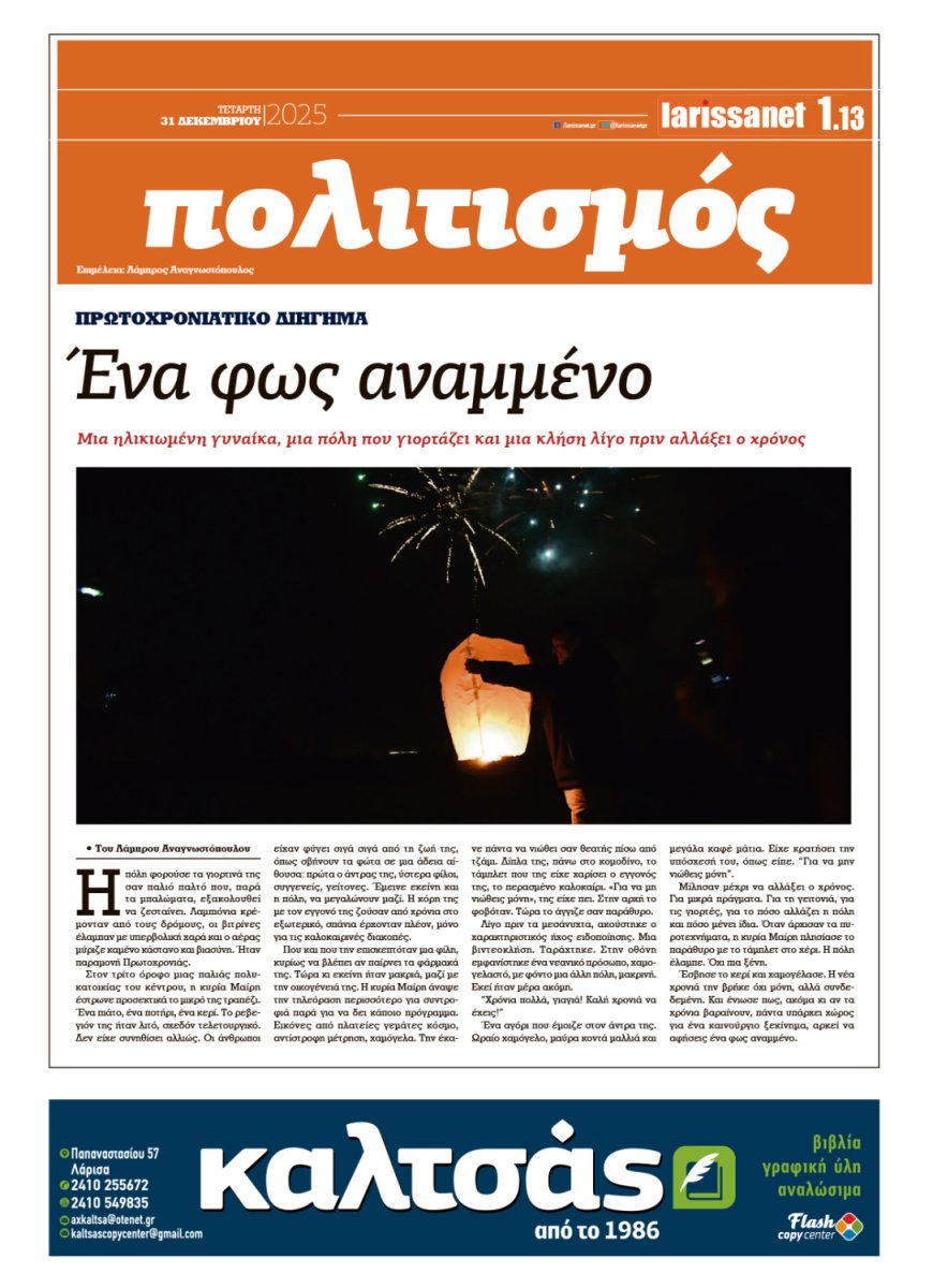 Ρεπορτάζ, άρθρα, συνεντεύξεις και όλο το παρασκήνιο της εβδομάδας στο νέο φύλλο της larissanet.