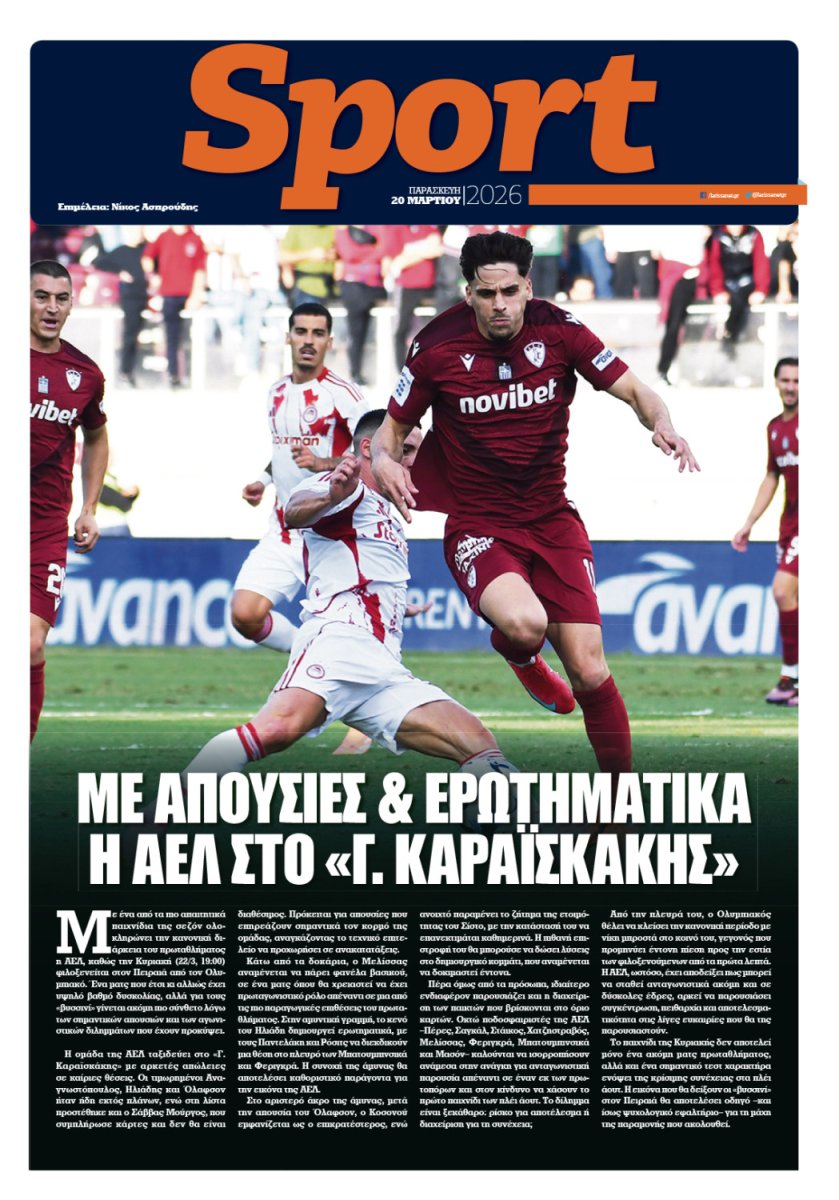 ΑΕΛ: Mε απουσίες και ερωτηματικά στο Γ. Καραϊσκάκης.